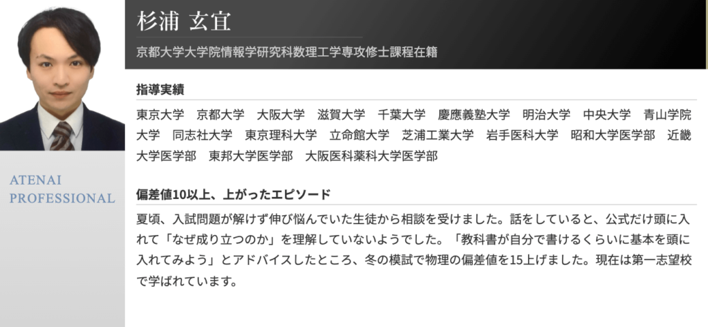 アテナイの授業は本質的な思考力を伸ばしながら科目の成績を上げていくので、志望校は関係ありません。理系難関大&医学部受験生でなくても受講可能です。ただし、「手早く楽して点数を伸ばしたい」「定期テストでとりあえず赤点が回避できればいい」という目的で受講されるとミスマッチになる可能性が高いため、ある程度受験に対して強い意志を持っている方、本気で成績を伸ばしたい方が向いていると思います。 「難関大を受講しようか迷っている」「受講したいけど自分に向いているのか分からない」という方は、一度お問い合わせフォームからご相談ください。
